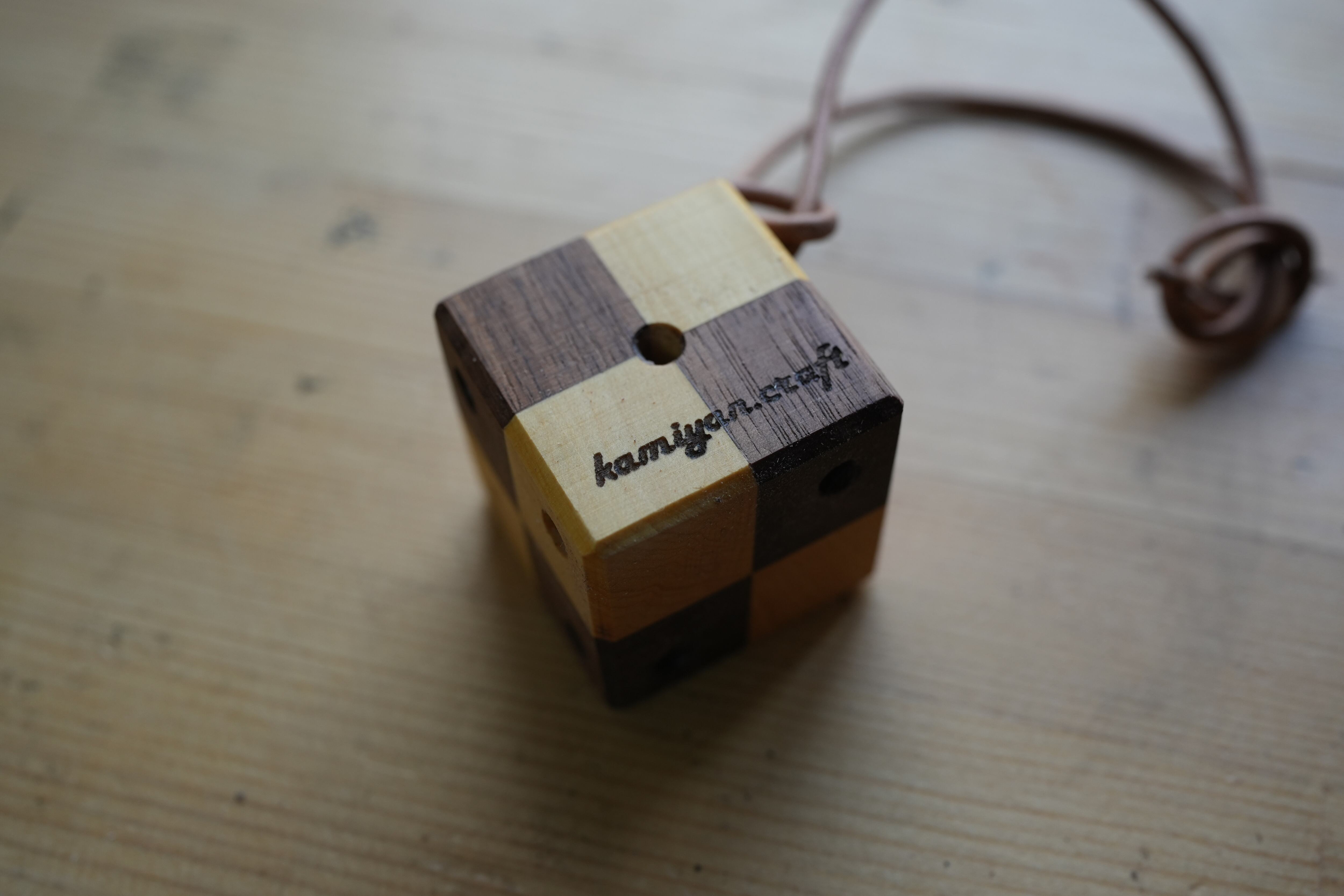 木製サイコロは、ウォールナットとホワイトオークを使用した高級感溢れる一品です。